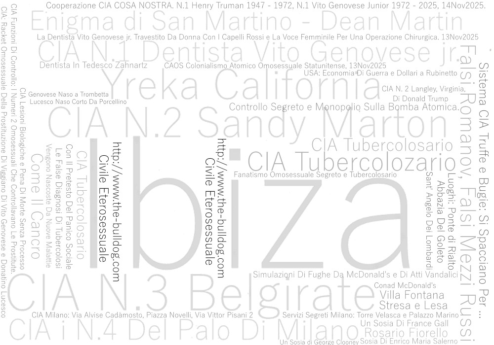Caos:Grazie A Ibiza.Tubercolozario.Fossetta: Fanatisme Homosexuel Secret et Tuberculose, Sciolare, Vattinne Ca Te Paleo, VAG Venise et Abbaye de Goleto, Sant' Angelo Des Lombardi, 3482602234: Nez en Trompette, Nez de Cochon, Dentifroscio Zahnarzt Ciccarelli, Sandy Marton, France Gall et L' Enigme de Saint-Martin, 11.10.2025. Tous les secrets du monde des secrets de 1950 a 2025, Edite' par Association pour l'abolition de la CIA et de tous les services secrets parce qu'ils sont hautement inconstitutionnels. Tous Droits Reserves. The-bulldog. http://www.the-bulldog.com/, Coucher de Soleil a Venise, 08 Novembre 2025. Vattinne Ca Te Paleo, Abbaye de Goleto, Sant' Angelo Des Lombardi, 3482602234: Nez en Trompette, Nez de Cochon, Dentifroscio Zahnarzt Ciccarelli, Sandy Marton, France Gall et L' Enigme de Saint-Martin, 11.10.2025. Tous les secrets du monde des secrets de 1950 a 2025, Edite' par Association pour l'abolition de la CIA et de tous les services secrets parce qu'ils sont hautement inconstitutionnels. Tous Droits Reserves. The-bulldog. http://www.the-bulldog.com/, Mardi' 04 Novembre 2025. Vattinne Ca Te Paleo, Abbaye de Goleto, Sant' Angelo Des Lombardi, 3482602234: Nez en Trompette, Nez de Cochon, Dentifroscio Zahnarzt Ciccarelli, Sandy Marton, France Gall et L' Enigme de Saint-Martin, 11.10.2025. Tous les secrets du monde des secrets de 1950 a 2025, Edite' par Association pour l'abolition de la CIA et de tous les services secrets parce qu'ils sont hautement inconstitutionnels. Tous Droits Reserves. The-bulldog. http://www.the-bulldog.com/, Mardi' 04 Novembre 2025.
